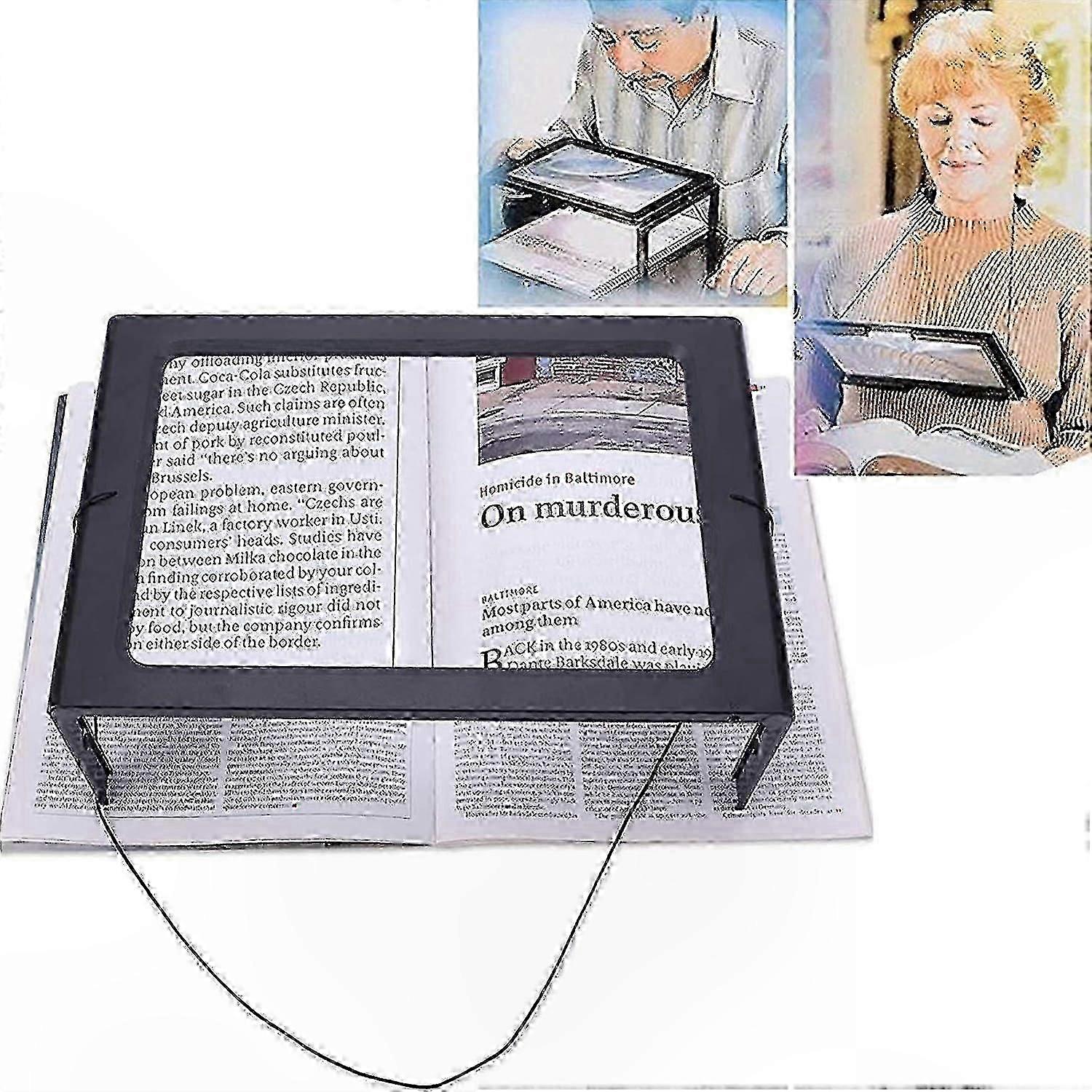 LED Lighted Magnifying Glass, 3X Hands-Free Rectangle Reader with 4 Lamps, Foldable Base for A4 Documents