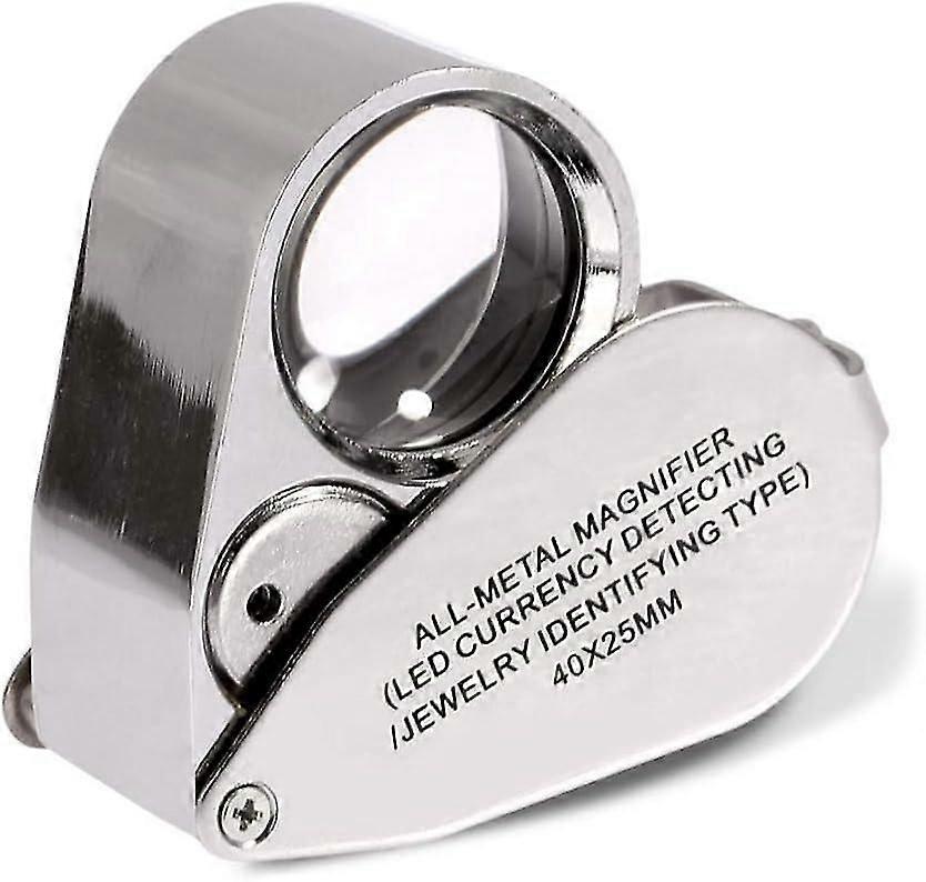 40x Jeweler's Magnifier Folding Jewelry Eye Loupe with Illuminated LED Light (LED Currency Detection