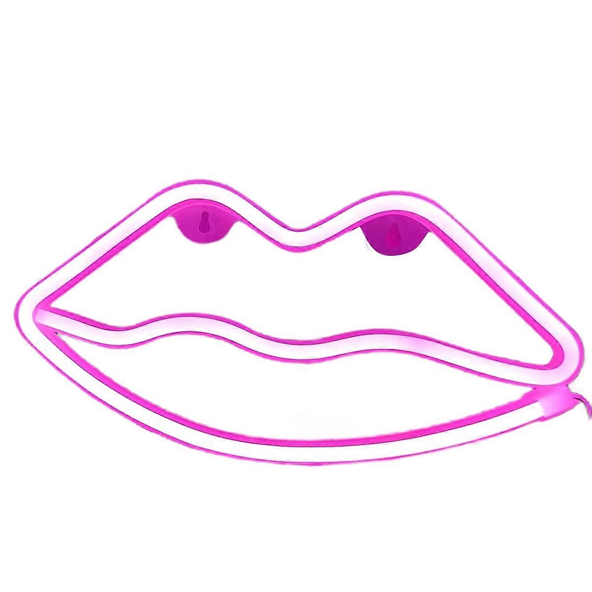 Pink lip shaped neon light