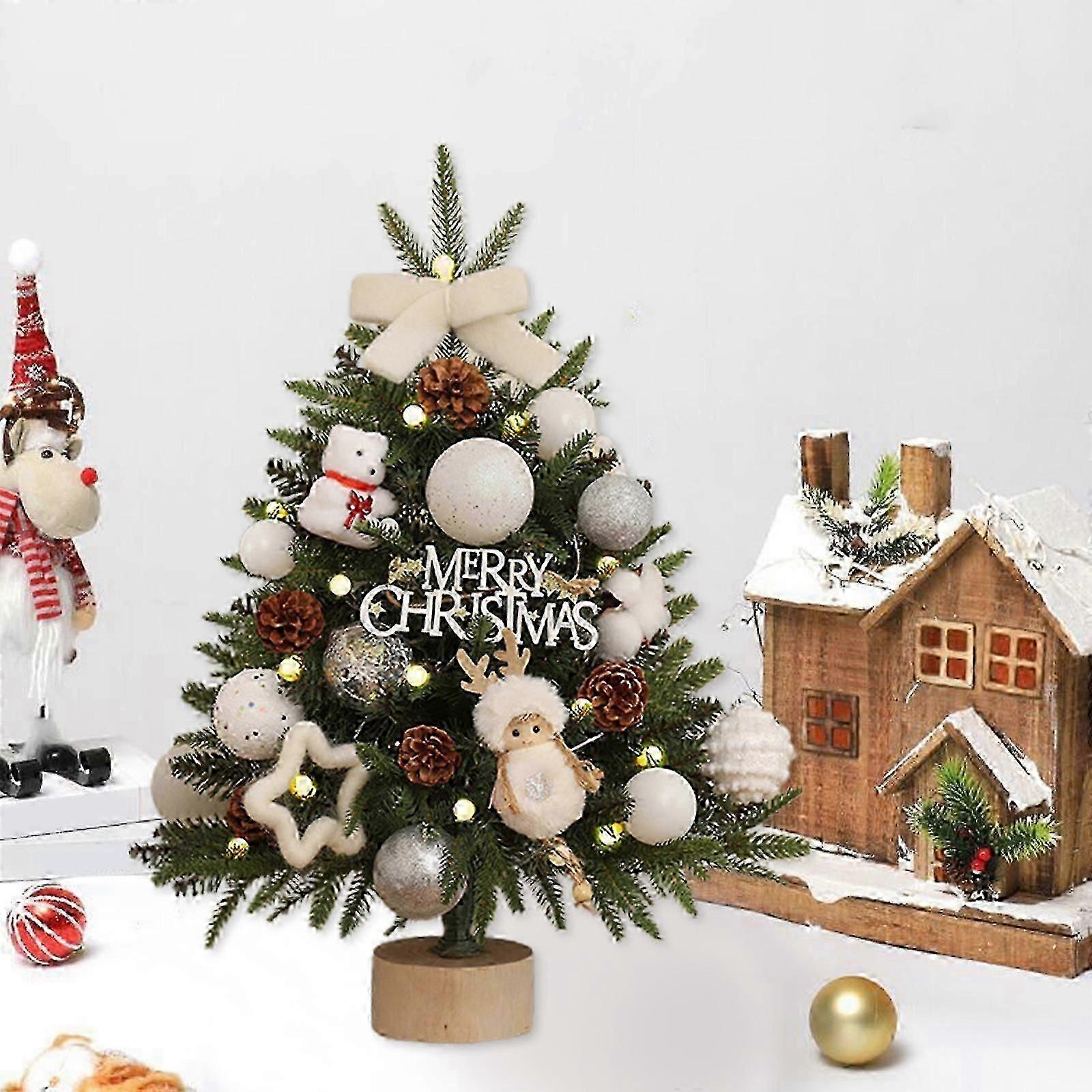 Christmas Decorations Mini Christmas Tree Christmas Decorations Desktop Christmas Tree : Feature: Quantity: 1Pcs Colour:W-hite Material:PVC Product size:45.0x25.0x25.0cm/17.71x9.84x9.84in Package size:45.0x15.0x15.0cm/17.71x5.9x5.9in Net weight:650g/1.43lb Gross weight:700g/1.54lb GOOD QUALITY MATERIALS - The tabletop Christmas tree is made of good quality materials to ensure durability and reusability for years to come. Each branch can be unfolded, allowing you to shape the mini Christmas tree according to your needs. It looks realistic and full, but also enhances the Christmas tree's resistance to pressure. STURDY BASE - The wear base provides stability and allows the Christmas tree to stand erect indoors or outdoors throughout the holiday season. It has a strong weight-bearing capacity that prevents tilting and swaying. This wear base will allow you to continue to use your Christmas tree for years to come, saving you money on Christmas expenses. SMALL CHRISTMAS TREE - This Christmas tree is small and colorful, suit for landscapes, table decorations, living room ornaments, winter scenes, train and railroad displays, mini gardens, and other family party decorations. EASY TO USE AND STORE - The whole tree comes as a unit and can be assembled immediately. All branches are attached to the trunk, making installation and fluffing more efficient. It is easy to fitting, disassemble and store. If the product is deformed, it will be restored to its former shape upon completion. In this lovely season, decorate your life , add more excitement and ingenuity to your life and cherish every. WIDE USE - Easy to install,uses five size batteries you can place the Christmas tree in your living room, bedroom, kitchen, living room, dining room and so on. Package Content: 1 x Simulated tree