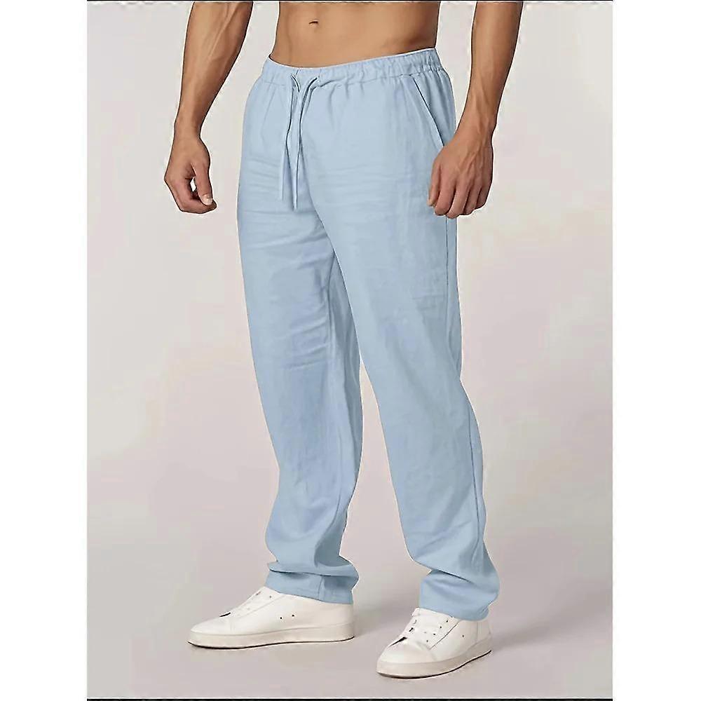 Autumn New Men's Cotton Linen Pants Straight Leg Lightweight Breathable Casual Basic Style Elastic Waist Long Pants
