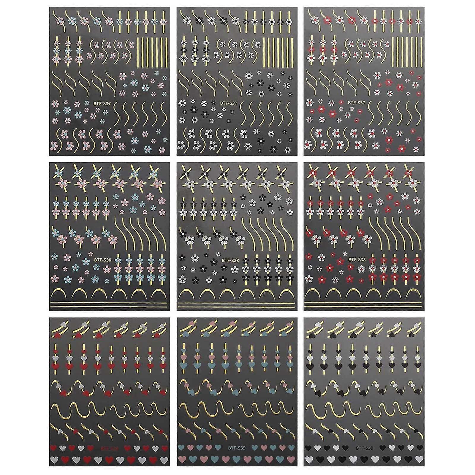 French Nail Art Stickers 3D Adhesive Nail Decals Flower Lines Nail Art Designs Line Nail Decorations Nail Stickers