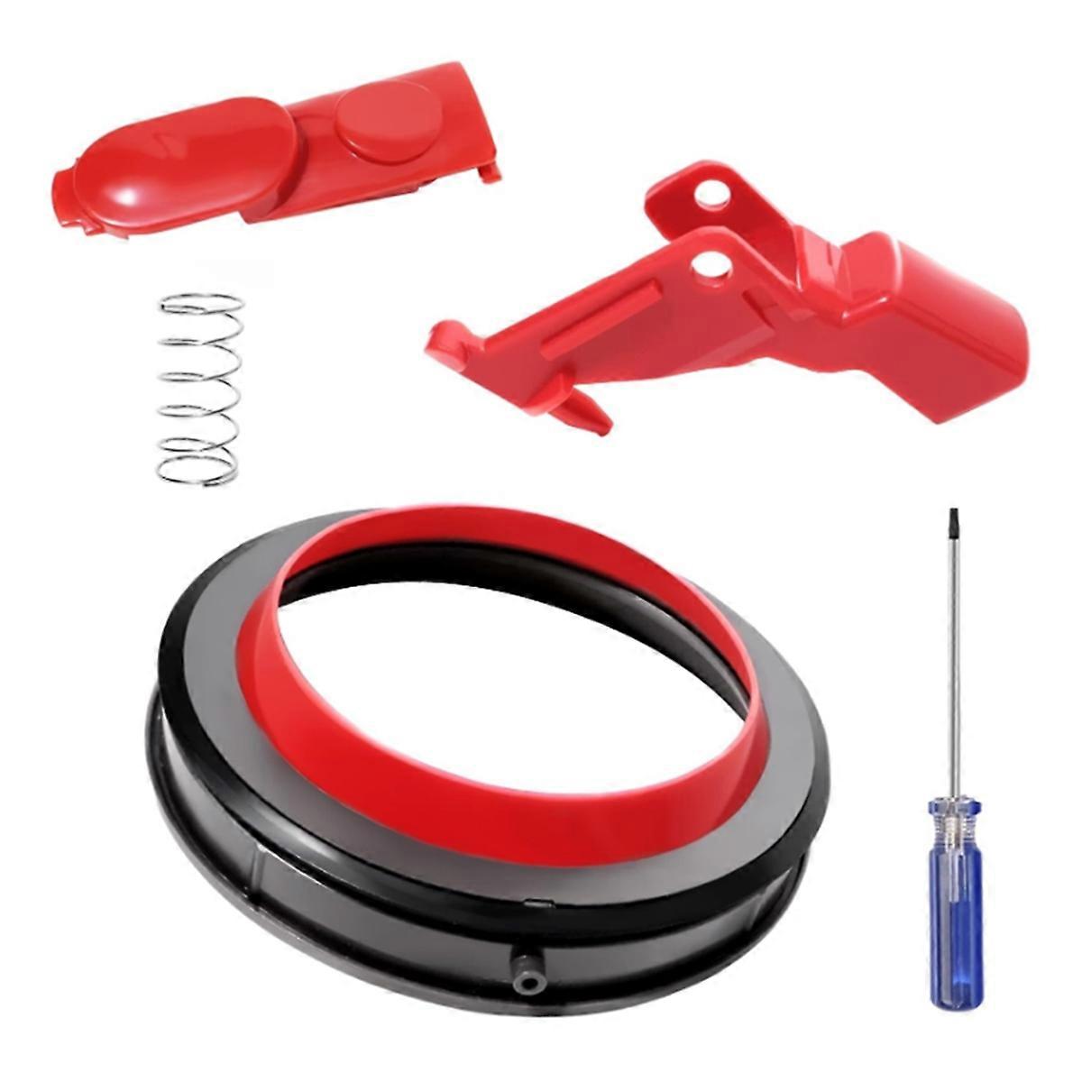 for : This replacement kit is specifically designed for the vacuum cleaner. It includes a dust container upper fixed sealing ring, clip latch tab button, release switch button, and a handy screwdriver for easy installation. High-Quality Sealing Ring: Crafted from premium rubber, the sealing ring is compatible with V11, SV14, and SV15 models. It ensures a tight seal to prevent dust escape, enhancing the vacuum's efficiency and maintaining output. Trigger Switch and Clip Latch: The trigger switch and clip latch are made from robust ABS material, ensuring and reliability. These parts are essential for smooth operation, allowing for easy maintenance and handling of your vacuum. Comprehensive Package for Maintenance: Alongside the sealing ring and clip latch, this kit includes a reinforced trigger switch compatible with V10, V11, and V15 models, and a screwdriver to assist in the hassle-free replacement process. Customer Satisfaction Guaranteed: We are committed to providing high-quality replacement parts for your . If you encounter any issues or have questions regarding the compatibility and installation, our customer service is ready to assist you. Color: Picture Color Material: plastic Package Contents: 1* Sealing Ring 1* Button 1* Spring 1* Switch 1* Screwdriver Only the above package content, other products are not included. Note: Light reflection and different displays may cause the color of the item in the picture a little different from the real thing. The measurement allowed error is +/- 1-3cm.