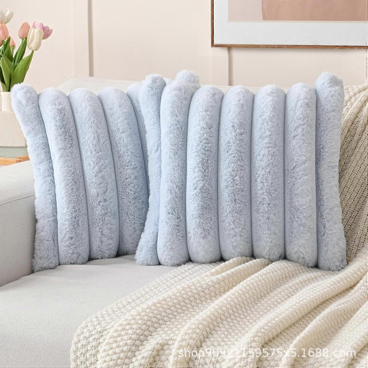 Rabbit fur pillowcase, plain color, vertical stripes, large drawstring, Nordic style rectangular ccomhion cover