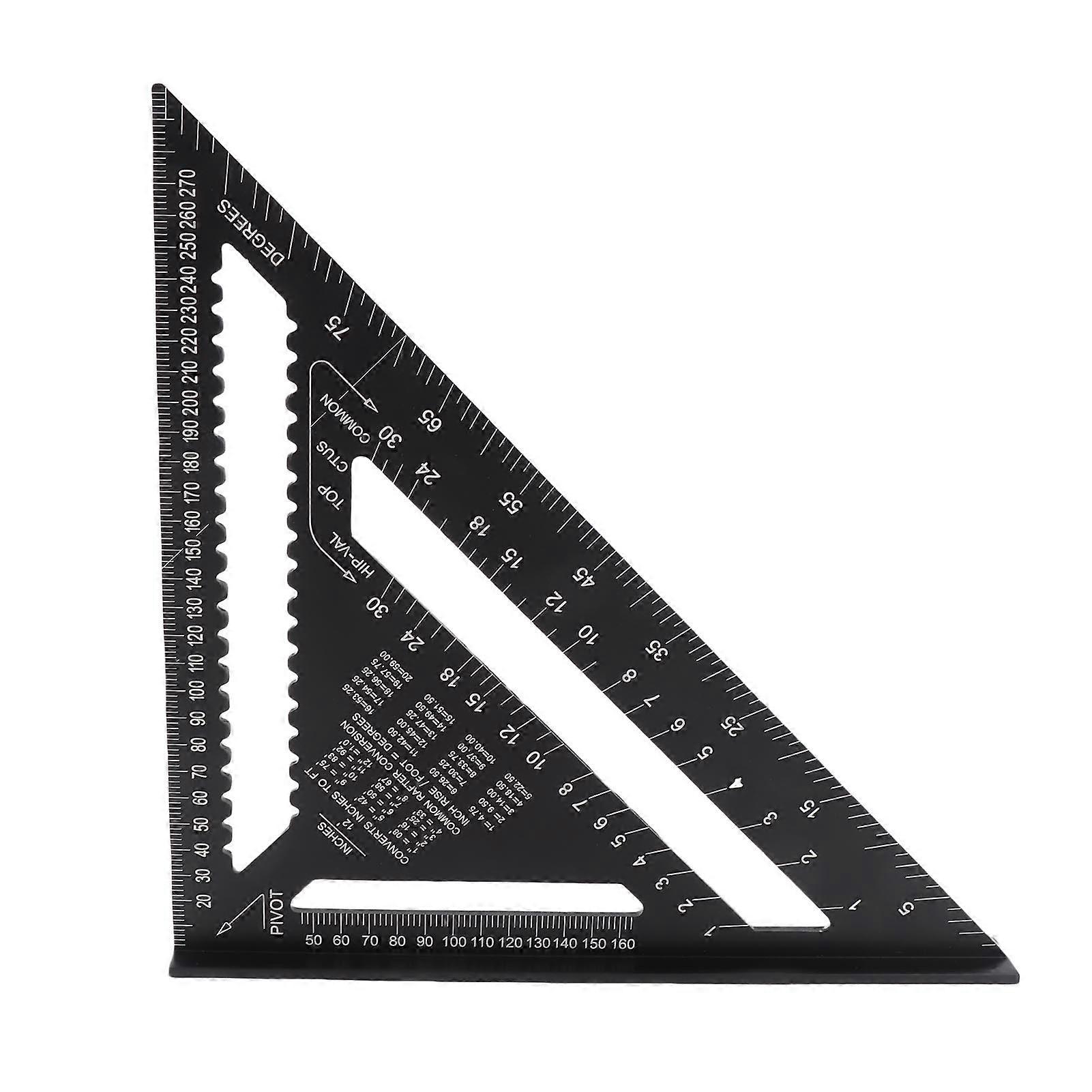 12-inch black anti-rust aluminum right-angled triangle ruler usable for carpenters and with protractor function