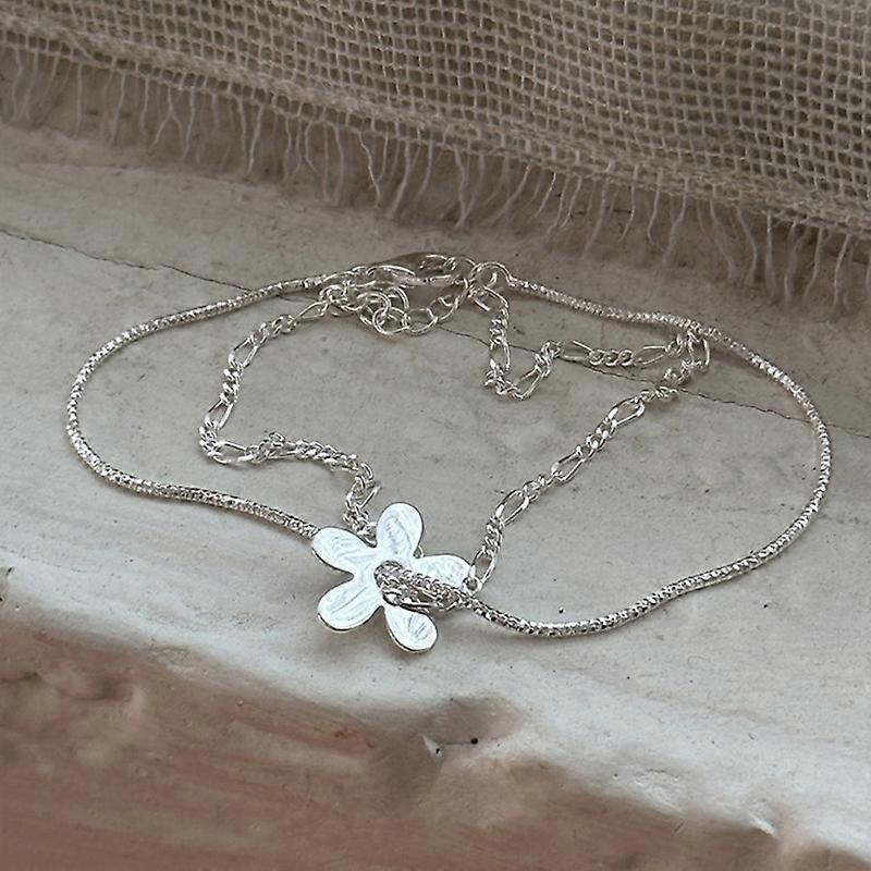 S925 Sterling Silver Small Flower Double Layer Bracelet,Silver