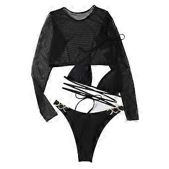 Sexy Halter Bikini Set Traje de Baño de 3 Piezas con Encubrimientos Traje de Baño de Playa para Mujeres