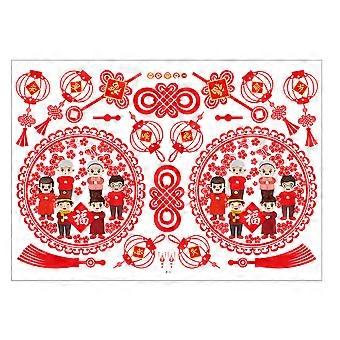 Pegatina Ventana Festival de Primavera Decoración del Hogar Estilo Chino Tradicional Rojo 90x60cm 1 Hoja