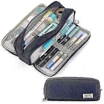Caja de lápiz grande Gran capacidad 3 compartimentos Bolsa de lápiz de lona para estudiantes