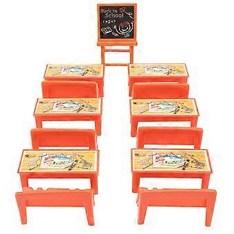 Juego de sillas de escritorio de pizarra mini de paisaje de 13 piezas Modelo de escena de aula ligero para decoración de sala de juegos educativa compacta