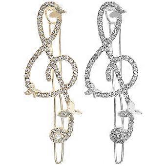 2pcs Nota musical Forma Clips de pelo Aleación de pedrería con incrustaciones barrettes Tocado