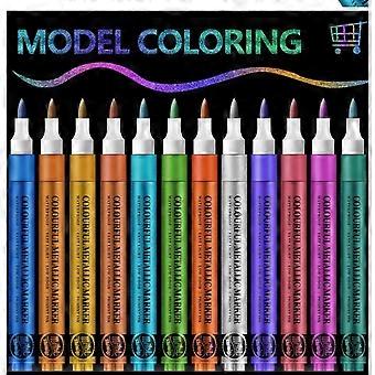 12 Metallic Colors Acrylic Paint Markers for Rock Painting Black Paper Stone Ceramic Fabric Graffiti Art Supplies Brush Tip