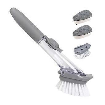Liquid Cleaning Brush with 1 Handle 2 Bristle 2 Sponge Heads Plastic Body 70ml Liquid Capacity Handle Pot Scrubber 25-26