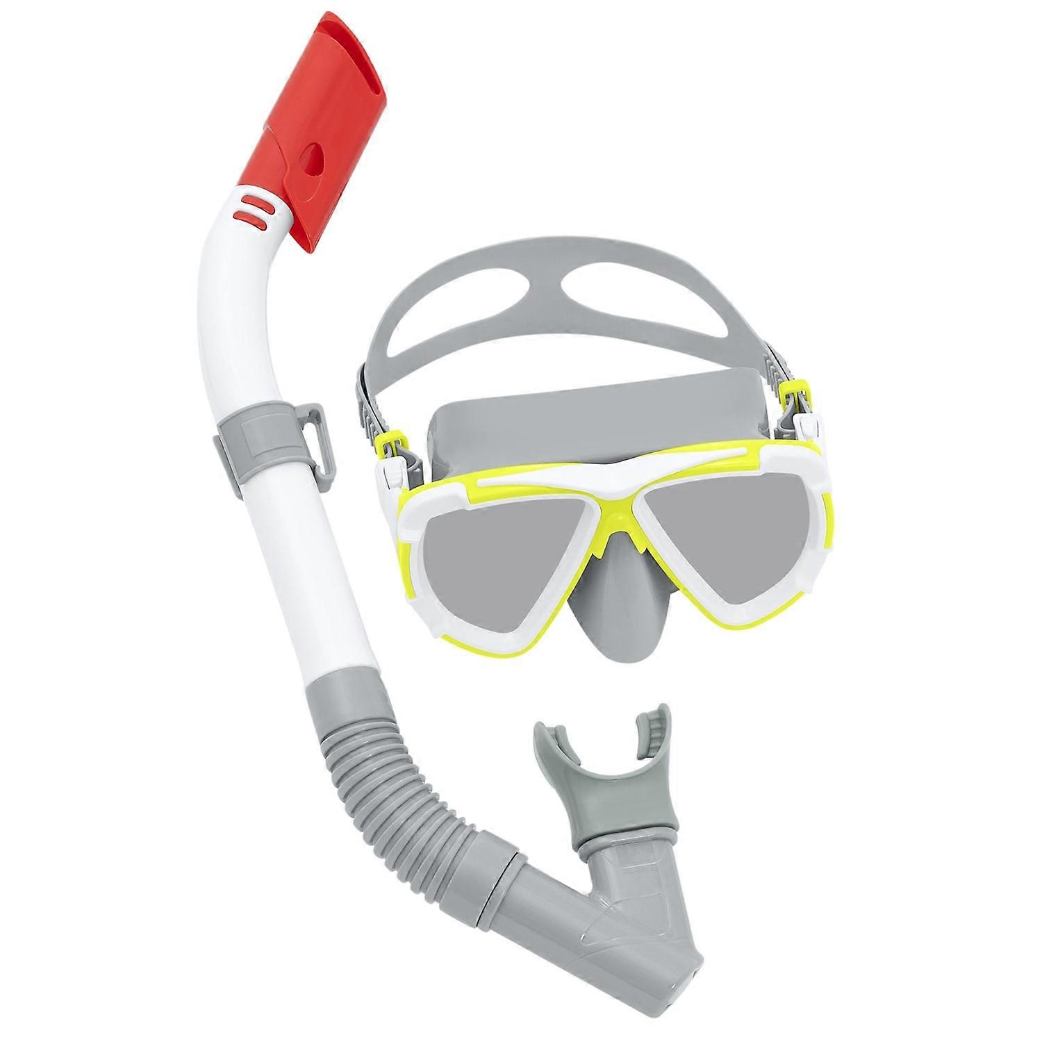 Snorkelset för ungdomar - Mask och Snorkel Detta snorkelset för ungdomar är perfekt för en spännande sommar i vattnet. Dyk in och njut av oändligt vattennöje Masken erbjuder ett brett synfält, vilket säkerställer att du inte missar några undervattensunderverk. Den sitter tätt mot ansiktet och förhindrar att vatten läcker in. Setet innehåller också en snorkel för att lätt kunna andas när du simmar under vattnet. Silikonmunstycket passar bekvämt i munnen och ett speciellt skydd förhindrar att vatten kommer in. Nyckelfunktioner: - Storlek: Universal - Inkluderar: Mask och snorkel - Ansiktspassande design - Bekvämt snorkelmunstycke - Latexfri Specifikationer: - Silikonrem - Polykarbonatlins med UV-skyddande beläggning - Rekommenderad ålder: 14+ - Vikt: 0,41 kg