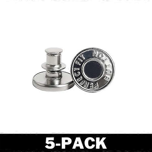 Sew-Free Trouser Buttons - Adjust Size Silver Multipack 5-Pack