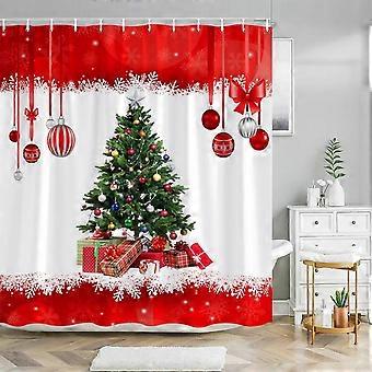180 cm x 200 cm, cortina de ducha de Navidad, temporada de nieve de invierno Santa Claus, juego de decoración de baño de tela con ganchos)