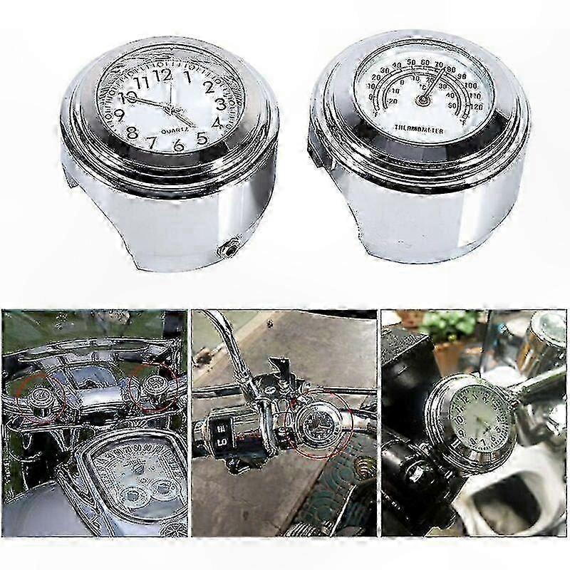 Silver Waterproof Motorcycle Clock With Thermometer, 7/8" 1" Handlebar Mount, Luminous Display