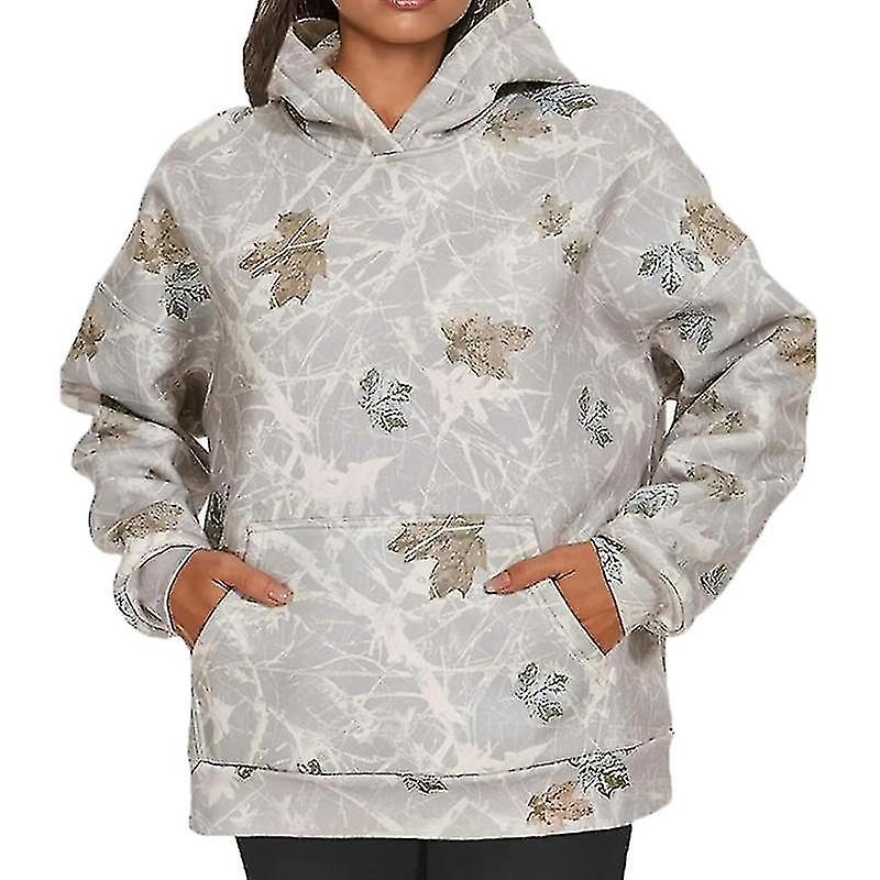 Women Camo Hoodie Print Oversized Fleece Sweatshirt Casual Pullover With Pockets
