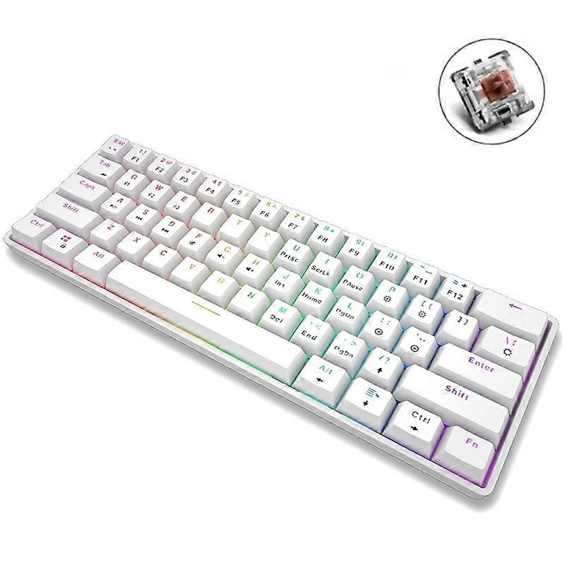 LEAVEN K28 61 Keys Gaming Office Computer RGB Wireless Bluetooth + Wired Dual Mode Mechanical Keyboard, Cabel Length:1.5m, Colour: Tea Axis (White) 1. Simple design, classic narrow side shape, suitable for all-match 2. All keys have no impact, quick response 3. Ergonomic high and low key position design, comfortable typing, not easy to fatigue 4. Compatible with multiple devices, smart standby, long-lasting battery life 5. Signal enhancement, 10 meters bluetooth wireless transmission, no lag in use 6. Rubber non-slip foot pad, easy to use, not easy to slide when typing, easy and comfortable 7. Compact and reasonable layout, retain independent arrow keys, conform to public use and absorb light, improve work efficiency, and facilitate use 8. Interface: Bluetooth 5.0 wired (Taye C connector) 9. Number of keys: 61 keys 10. Cable length: 1.5 meters 11. Material: ABS 12. Battery capacity: 2000mAh 13. Power supply mode: Type-c data cable 14. Features: support Bluetooth + wired, cool full-key backlight, mechanical shaft body, long-lasting battery life, RGB colorful lighting 15. Size: 29x10x3.5cm 16. Weight: about 535.5g