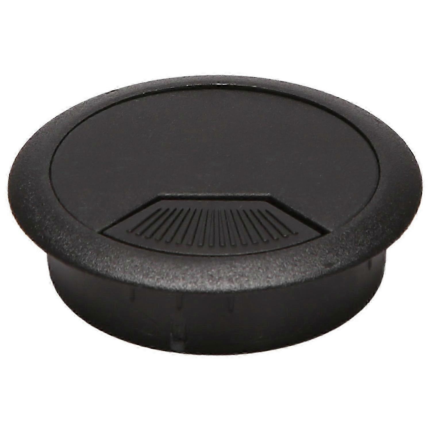 Two 50mm diameter desktop cable tray covers, black